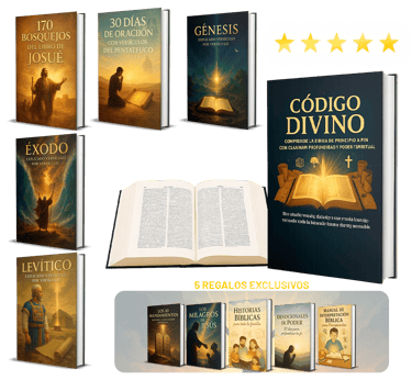Al adquirir CÓDIGO DIVINO SAGRADO DE LA BIBLIA hoy, recibirás totalmente GRATIS estos 5 regalos exclusivos que complementarán tu estudio y crecimiento espiritual: